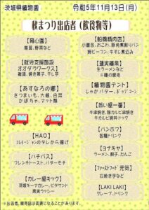 11月13日(月)秋まつりの出店者一覧を掲載しました🍴