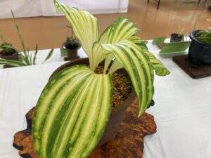 ネジバナ、ミヤマウズラなどの斑入りの植物など、葉や花が変わった変異植物の展示。