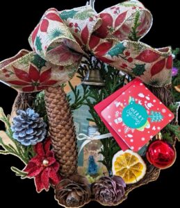 クリスマスをテーマに、クリスマスツリー、ドアベル、スワッグ、リース、アロマワックス他を行います。