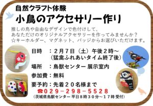 開花情報(花だより) 催し物案内 利用案内 施設案内 茨城県植物園 > イベント情報 > 【体験】 猛禽ふれあいタイム(令和8年2月) 【体験】 猛禽ふれあいタイム(令和8年2月) 開催日時:令和8年2月7日(土)13:00~ 開催場所:鳥獣センター(詳しい場所は当日ご確認ください) ※県民の森 駐車場をご利用ください。 ○ 事前予約は必要ございません。 ○ 天候等により中止・変更になる場合があります。予めご了承ください。 お問い合わせ:029-298-5528 鳥獣センター