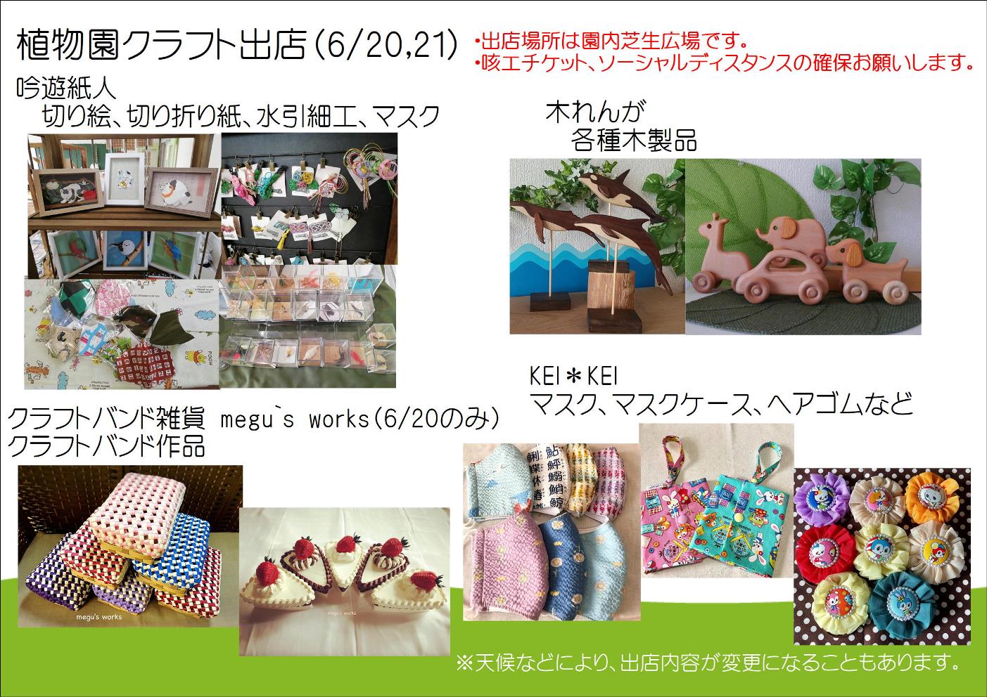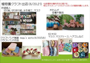 催し物案内 利用案内 施設案内 開花情報(花だより) 新着情報 茨城県植物園 > 新着情報 > クラフト及びケータリングカー出店(6/20,21) クラフト及びケータリングカー出店(6/20,21)今週末、クラフト出店とケータリングカーの出店があります。 表地を夏向きの薄手のリップル生地を使用した夏用マスクやマスクケース、布マスクなどと切り絵や水引細工、ヘアゴム、木製品などの販売です。 ケータリングカーの出店もあります。